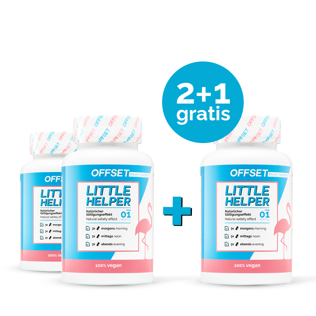 Und da kommen die Little Helper ins Spiel: Die rein pflanzlichen Kapseln unterstützen dank des enthaltenen Glucomannans die Sättigung, so dass wir schon mit kleineren Portionen satt werden. Die Little Helper helfen uns auch, wenn es darum geht, die Ess-Lust bis zur nächsten Mahlzeit zu überbrücken und nicht mehr “hangry” zu sein. Der im Little Helper enthaltene Ballaststoff Glucomannan wird aus der japanischen Konjakwurzel gewonnen und quillt in Verbindung mit Wasser auf seine 50-fache Größe auf. Der Magen füllt sich und signalisiert das auch dem Kopf mit einem eintretenden Sättigungsgefühl. Das hilft uns auf natürliche Weise unseren Appetit in Schach zu halten.
