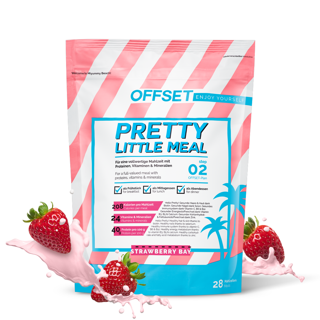 During the Offset Days, you get your body used to your new weight with 2 mixed meals and one Pretty Little Meal per day. Take the 3 Little Helper capsules half an hour before the shake. In the morning and at lunchtime, take 1 Little Activator after the shake or mixed meal.