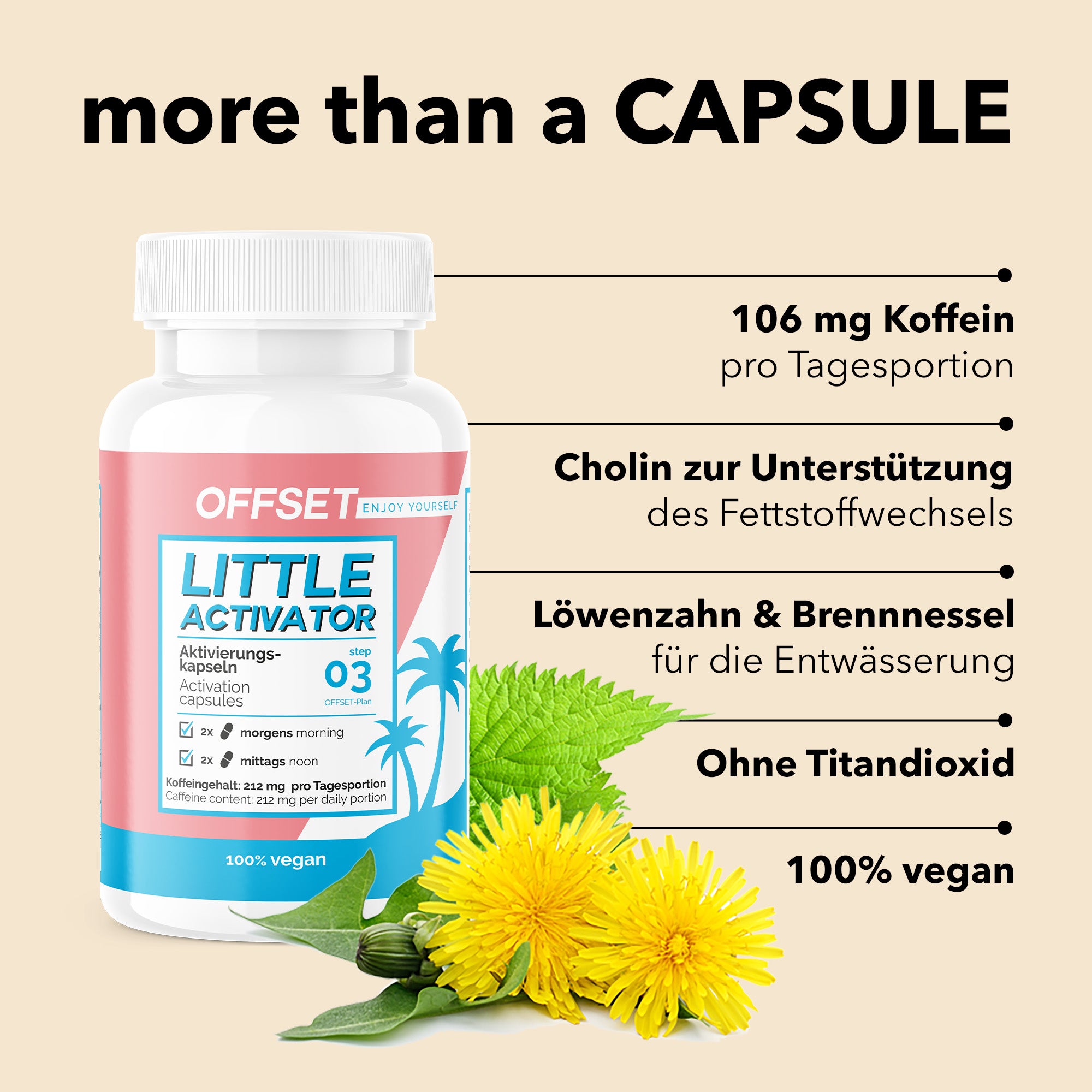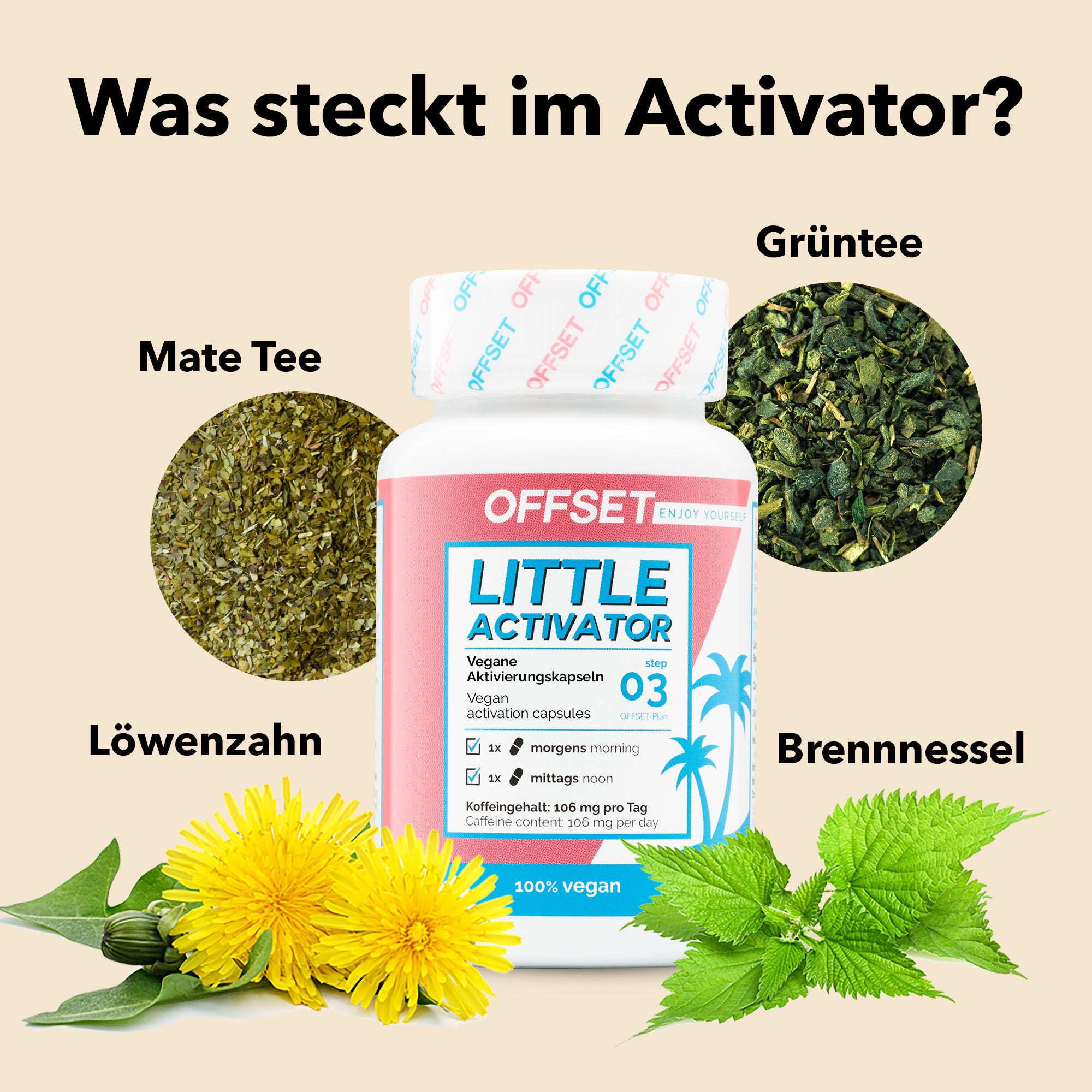 While others rely on complicated diet tricks, you activate your body from the inside - with the power of plant-based ingredients. The Activator capsules fit perfectly into your weight loss routine: simply take them with a glass of water and benefit from the supportive effect on your fat metabolism. Activation can be so easy!