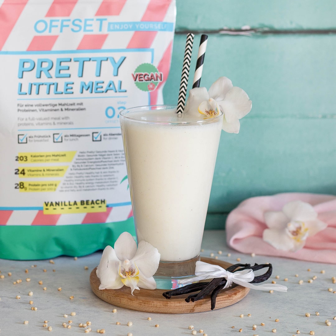 The vegan Pretty Little Meal contains powder for preparing 14 meals. If you follow the 2-week OFFSET plan, it will last for 7 days. 2 sachets of vegan Pretty Little Meals are then sufficient for the 14 days as part of the 2-week OFFSET plan. However, you can also use the Pretty Little Meal vegan to balance out a high-calorie meal and get by for longer.