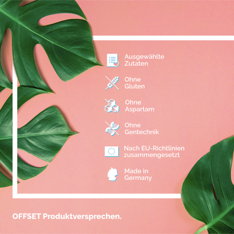 Ein Geheimtipp, den unsere OFFSET Babes zu schätzen wissen: Unsere pflanzlichen Aktivierungs- und Sättigungskapseln: Little Helper und Little Activator! Sie sind unsere kleinen Helferlein und unterstützen dich bei deiner Diät und Ernährungsumstellung. Wie genau sie helfen? Der im Little Helper enthaltene Ballaststoff Glucomannan kommt aus der japanischen Konjakwurzel und quillt in Verbindung mit Wasser auf - ähnlich wie bei Chiasamen - nur eben viel stärker. Glucomannan hat von allen Lebensmitteln die höchste Wasserbindungsfähigkeit. Perfekt für die Extraportion Sättigung während deiner Diät! Die veganen Kapseln sorgen so für eine schnelle und angenehme Sättigung, sodass du schon von kleineren Portionen satt wirst. Denn das in Little Helper enthaltene Glucomannan trägt innerhalb deiner kalorienarmen Ernährung des OFFSET-Plans zum Gewichtsverlust bei - bei einer täglichen Aufnahme von 3 x 1 g (3x3 Kapseln) mit je 1-2 Gläsern Wasser. Die Kapseln mit reichlich Wasser einnehmen, damit das Glucomannan in den Magen gelangt. Es besteht Erstickungsgefahr bei Verbrauchern mit Schluckbeschwerden oder bei unzureichender Flüssigkeitszufuhr.