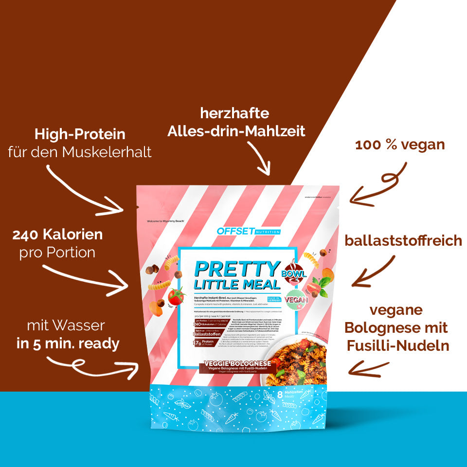 Pretty Little Meal Bowl erfüllt nur in diesem Rahmen ihren angestrebten Zweck. Andere Lebensmittel müssen Teil dieser Ernährung sein. Schaue dafür auch in unsere kostenlose OFFSET-App mit vielen leckeren Rezepten für Mixed Meals. Trinke dazu täglich 2-3 Liter Wasser.