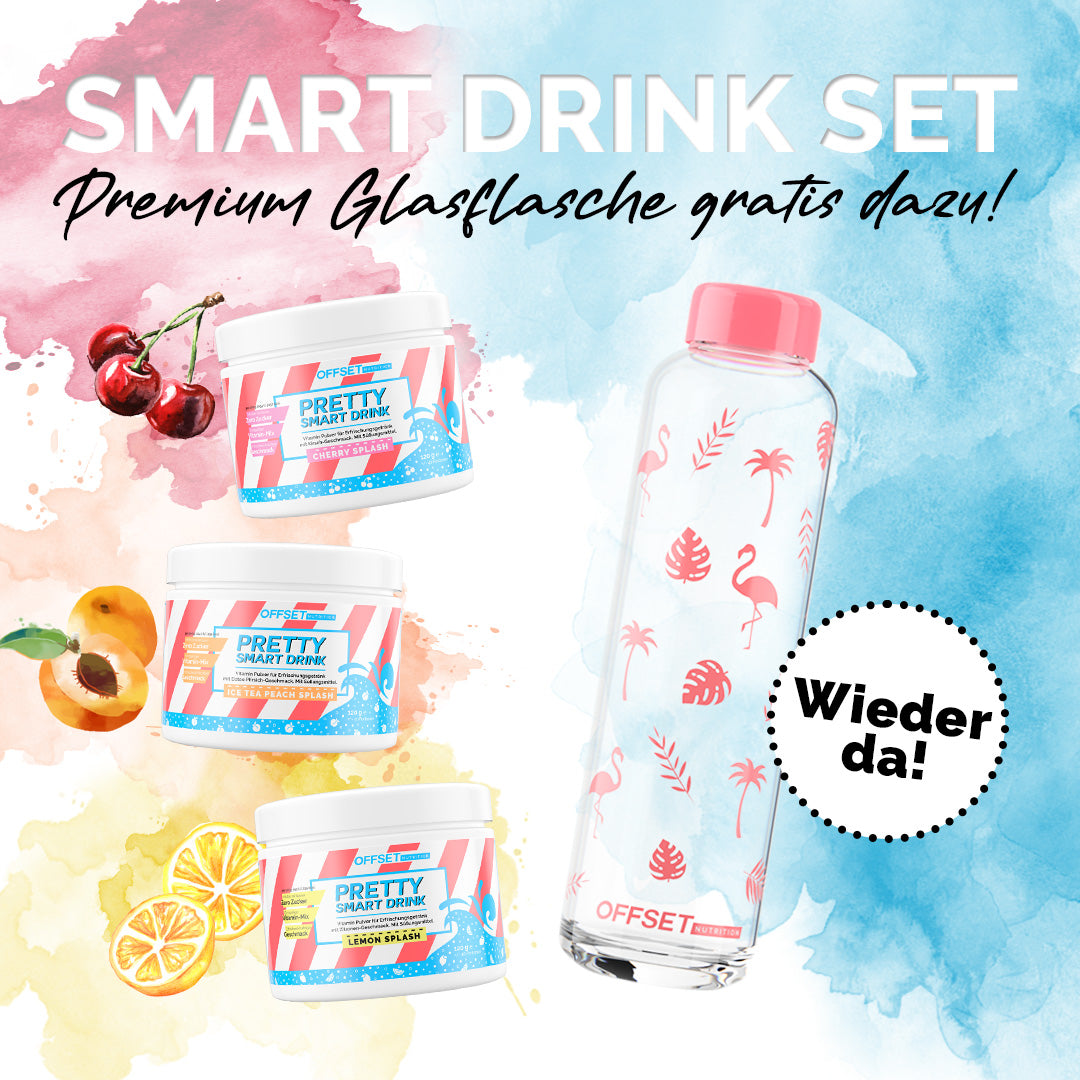 Die OFFSET-Glasflasche überzeugt nicht nur durch ihr stylisches Design, der farbenfrohe Hingucker ist auch perfekt für unterwegs. So kannst du deine Pretty Smart Drinks bei Bedarf jederzeit frisch zubereiten. Der extra dichte Drehverschluss sorgt für einen sicheren Transport.