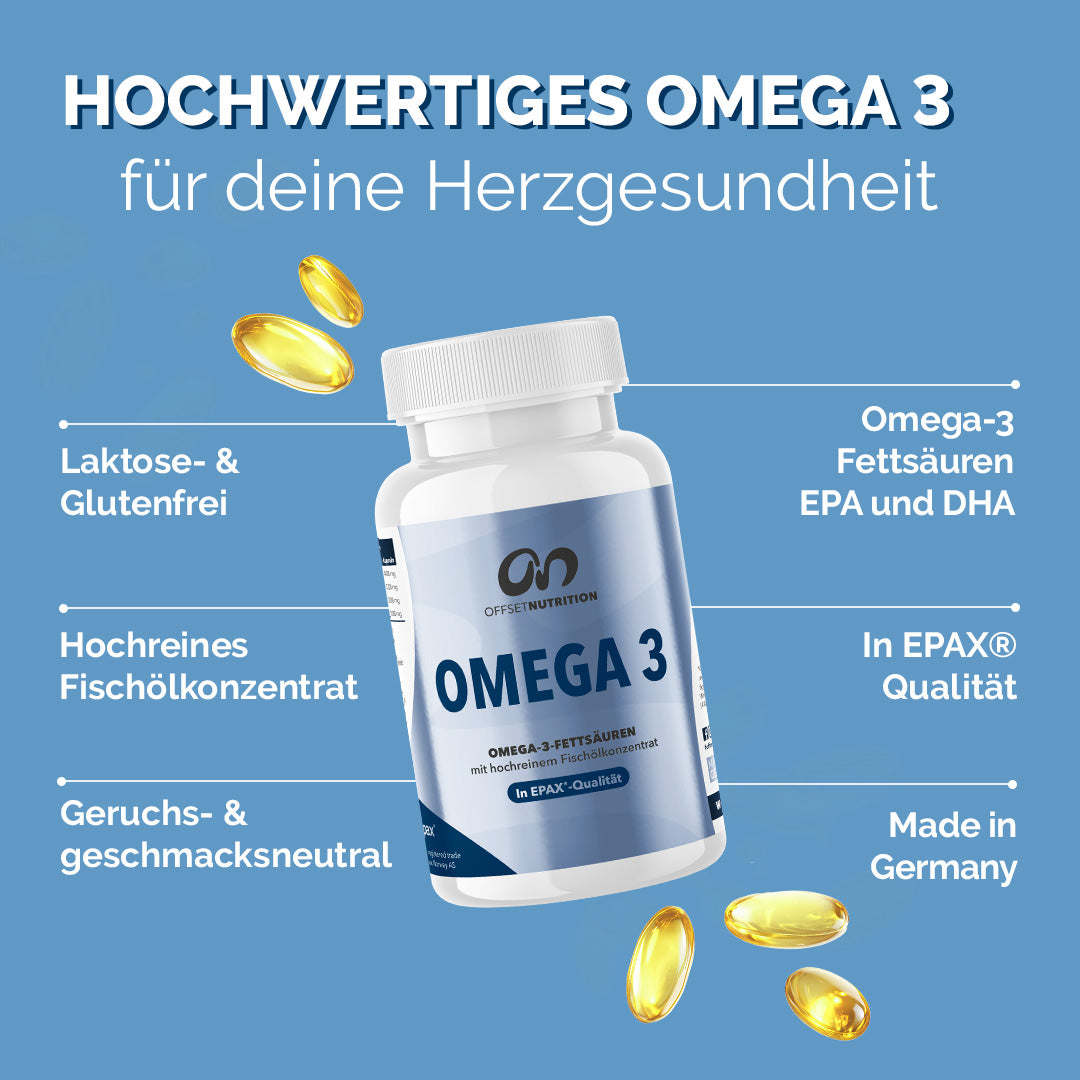 Du weißt, dass OMEGA 3 wichtig ist, aber täglich Fisch essen ist einfach nicht drin?! Wir haben die Lösung: Täglich 1-4 Kapseln und dein Körper bekommt genau das, was er braucht! Unser OMEGA 3 enthält 83% reine Fettsäuren in EPAX®-Qualität – dein All-in-One für Herzgesundheit, starkes Immunsystem, optimale Gehirnfunktion und gesunde Zellen!