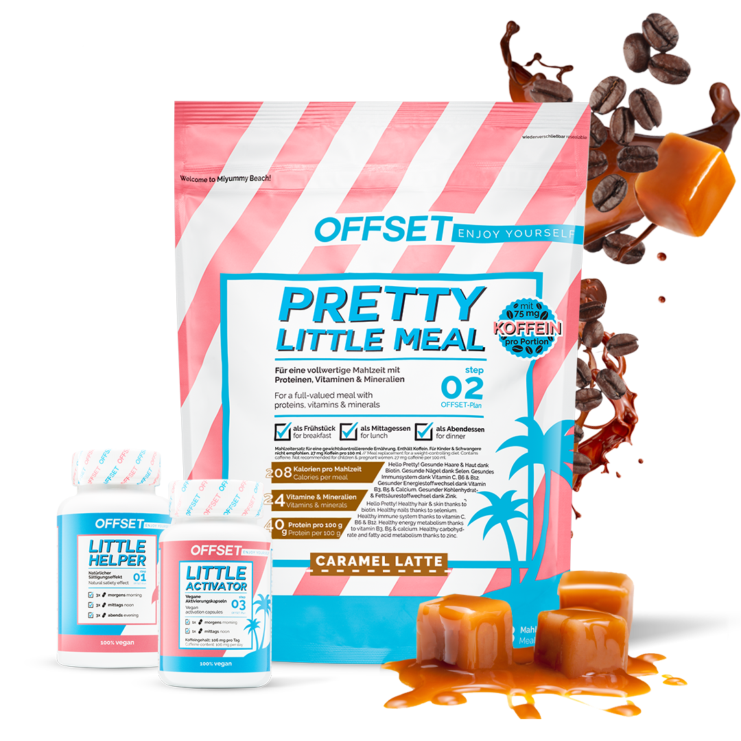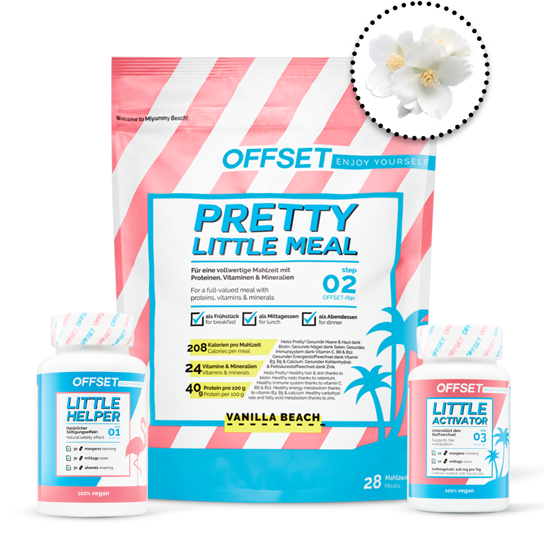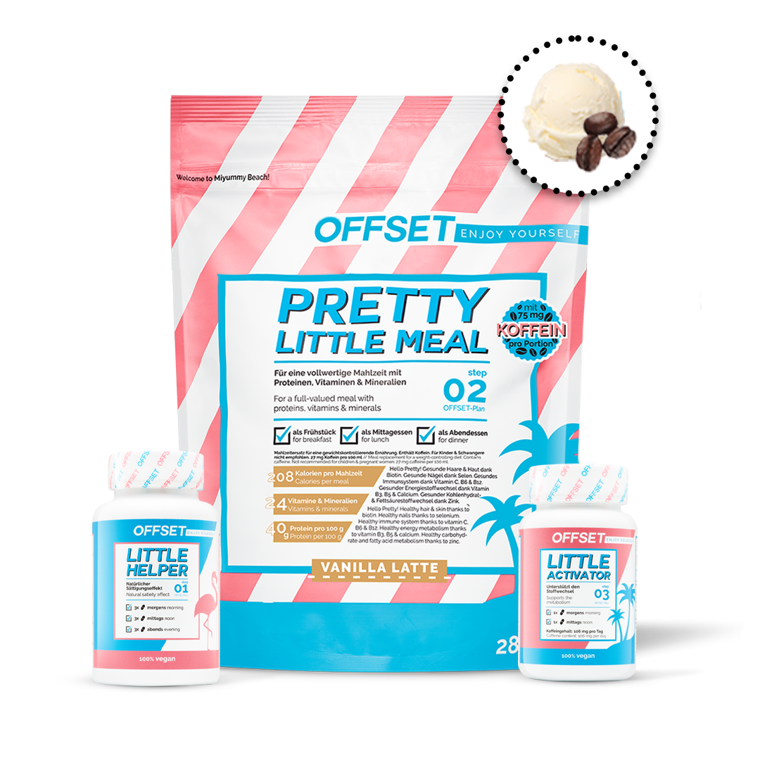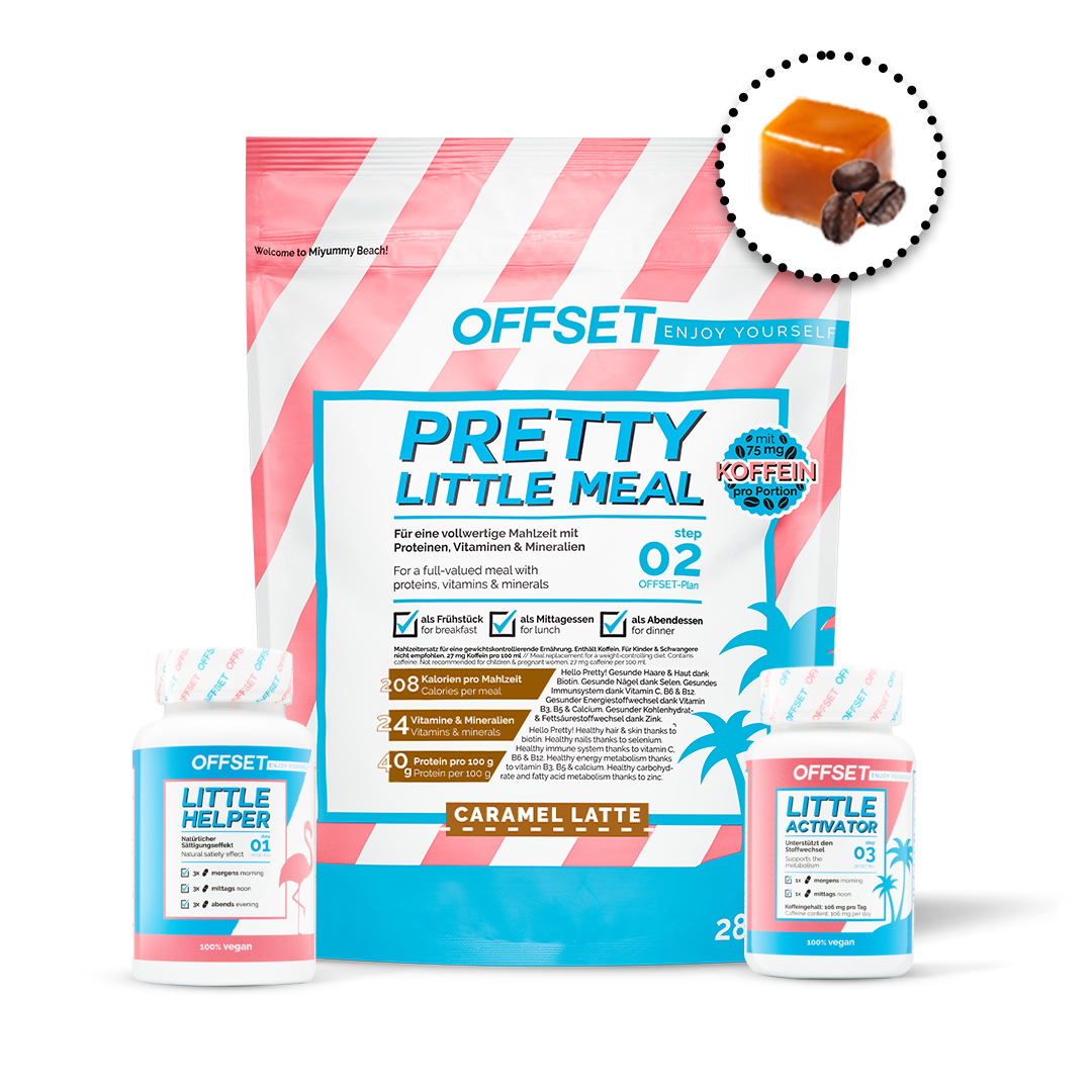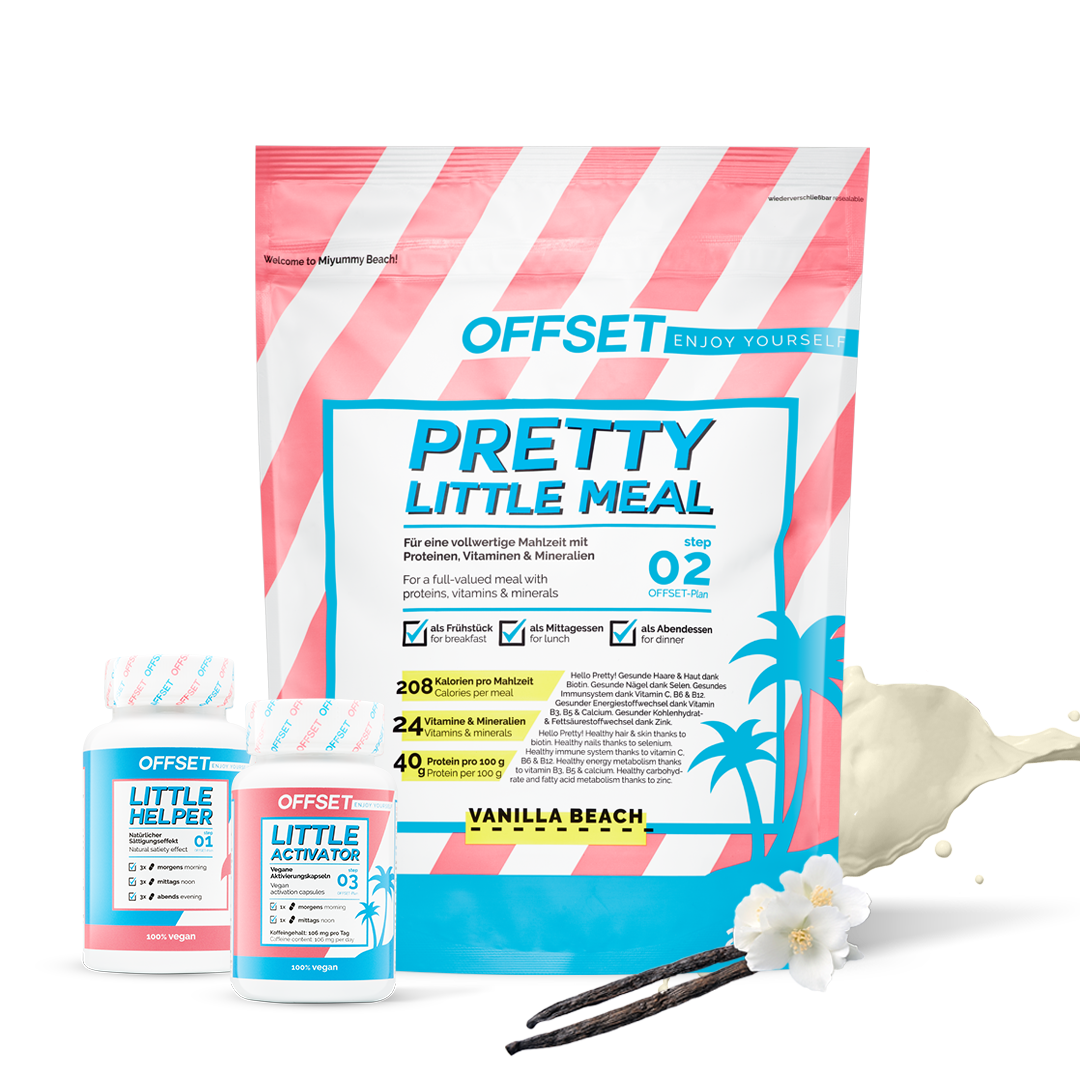 Pretty Little Meal - ganz schön smart. Während deines OFFSET-Plans unterstützt du deinen Körper, spielend leicht vom Zucker loszukommen. Gleichzeitig erhältst du alle wichtigen Mikro- und Makronährstoffe, die dein Körper benötigt. In Kombination mit deinem leckeren Mixed Meal erzielst du dein Pretty New Me.