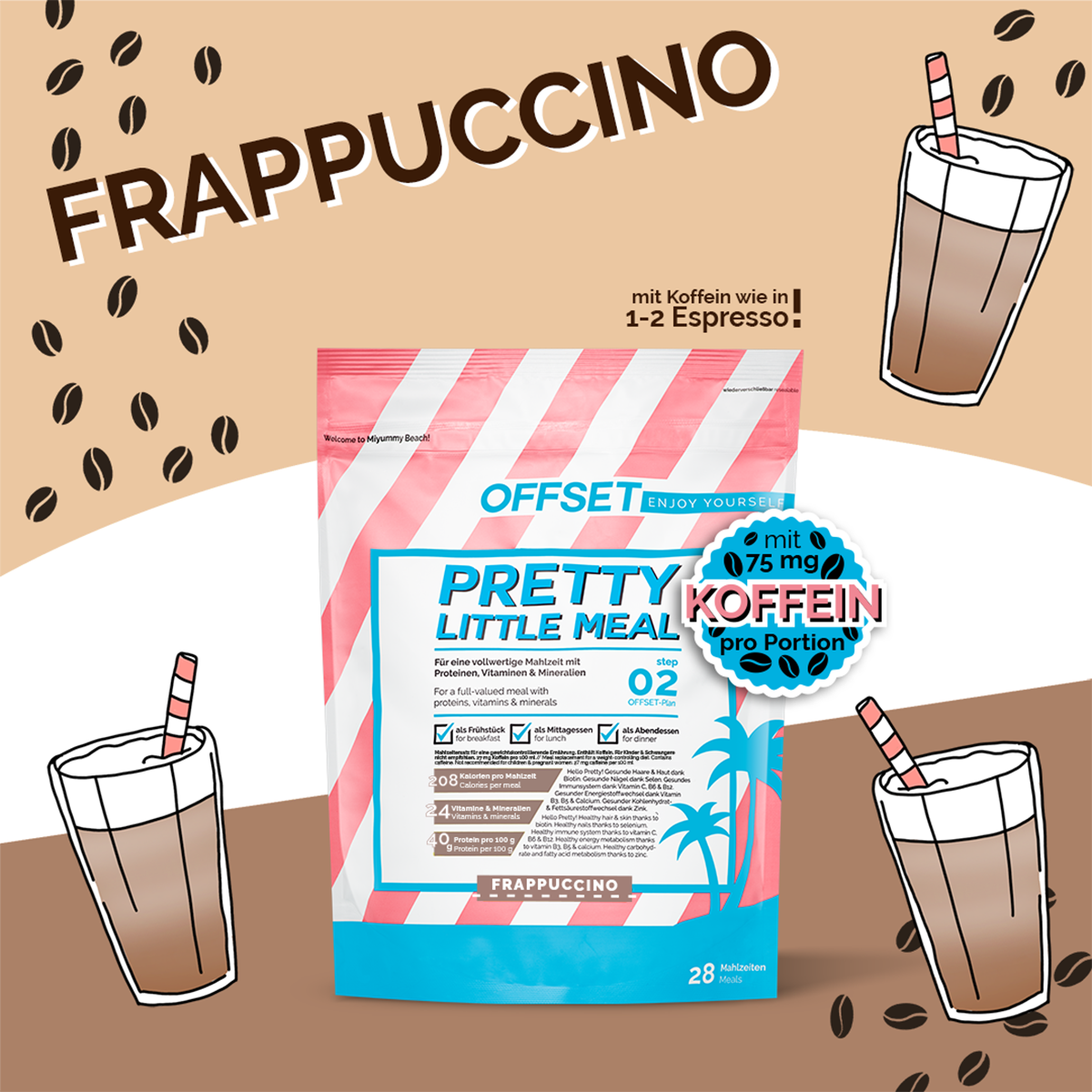 Für die Zubereitung des Pretty Little Meals gibt es viele verschiedene Möglichkeiten. Generell mischst du dein Meal mit fettarmer Milch in deinem OFFSET-Cup zusammen. Mit deinem OFFSET-Meal Mixer kannst du dein Pretty Little Meal supercremig mixen - so ist es wahnsinnig lecker. Das genaue Mischverhältnis und wie du das Pretty Little Meal auch mit deiner Lieblingsmilch mixt, findest du in deinem OFFSET Book.