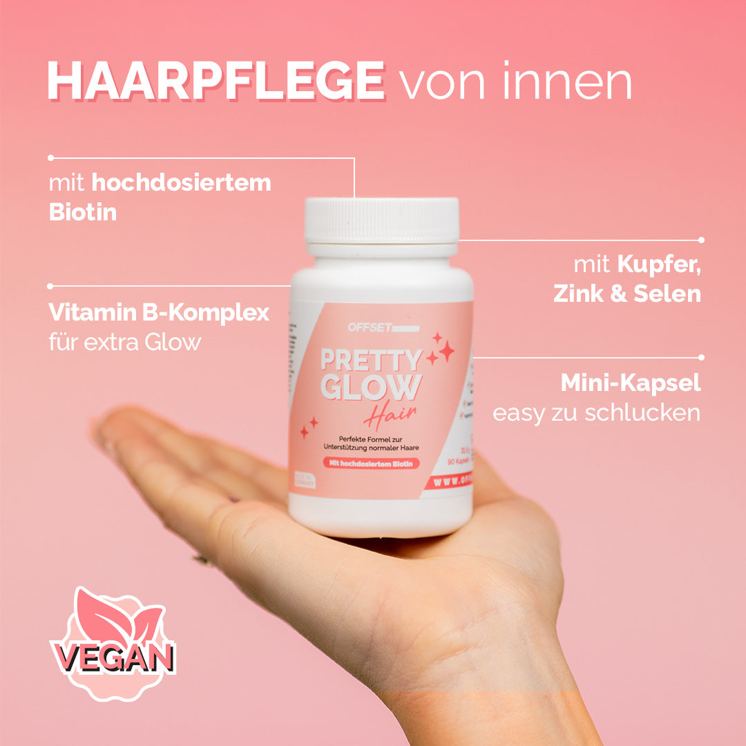 Mit Pretty Glow Hair bekommst du die Nährstoffe, die deine Haare lieben werden. Mach jeden Tag zum absoluten HAIR-SLAY-DAY! Deine Haare werden es dir danken.