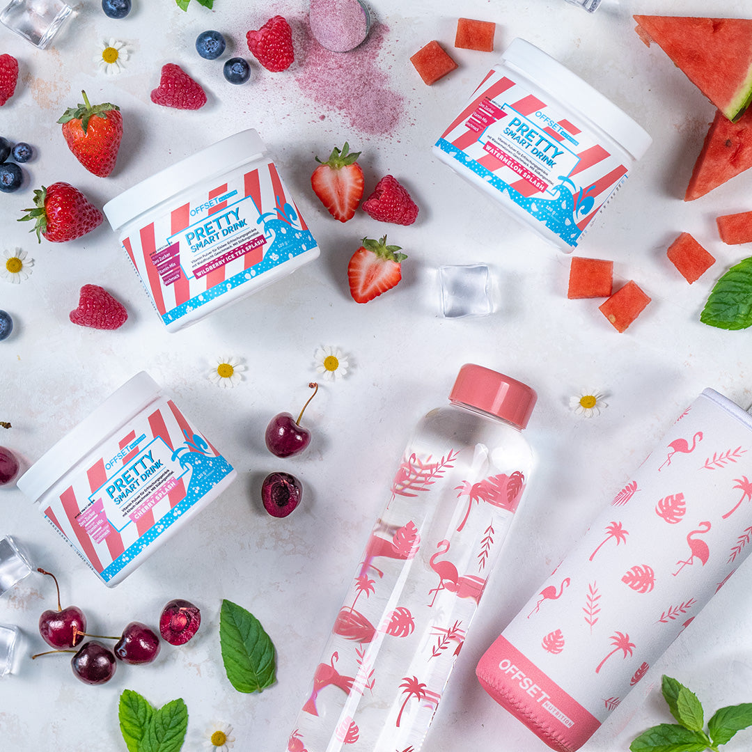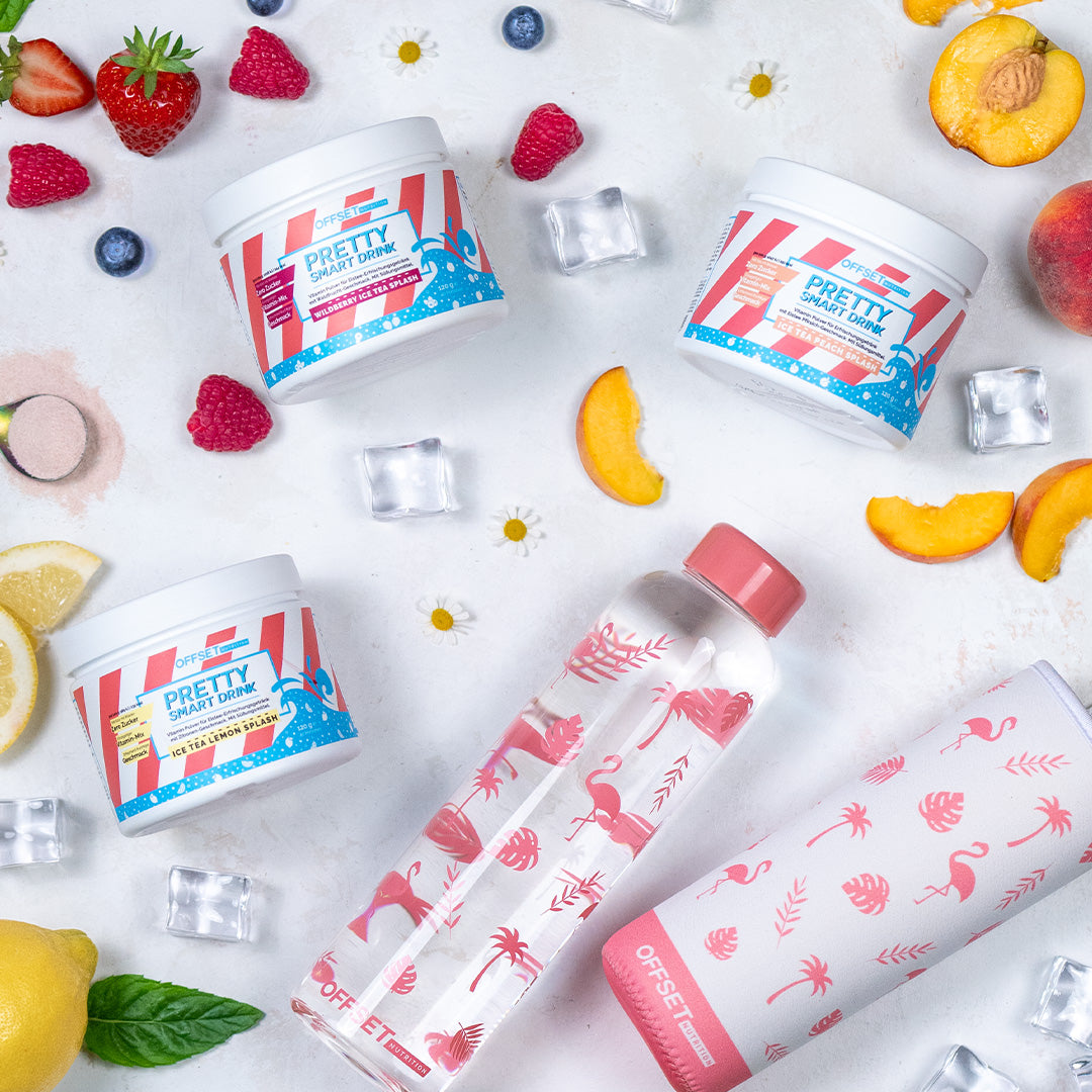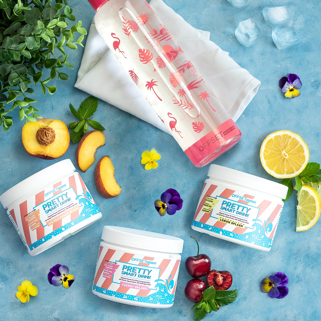 Den Pretty Smart Drink kannst du perfekt in deinem OFFSET-Plan integrieren, oder auch einzeln im Alltag benutzen. Worauf wartest du noch? Verwandle Wasser in eine fruchtige Erfrischung mit Benefits!